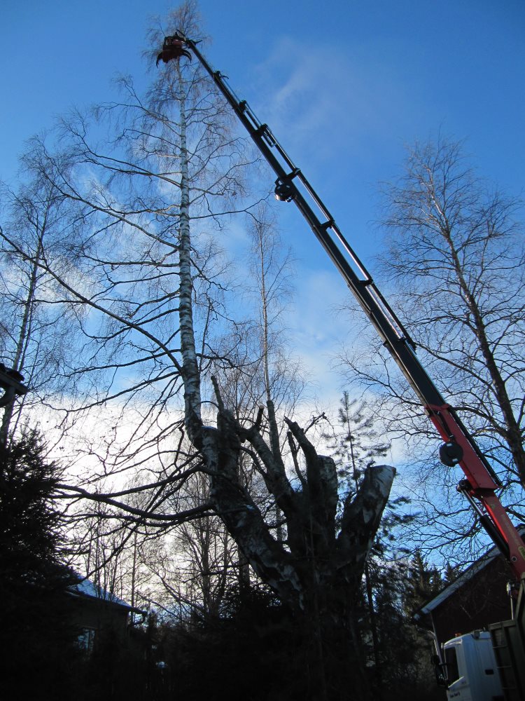 jäte kuljettaa pois eikä työskentelystä synny suurta sotkua. Asiakkaan halutessa voimme myös sahata puun rungon haluttuun mittaan ja kuljettaa ainoastaan risujäte pois. Huomaathan että